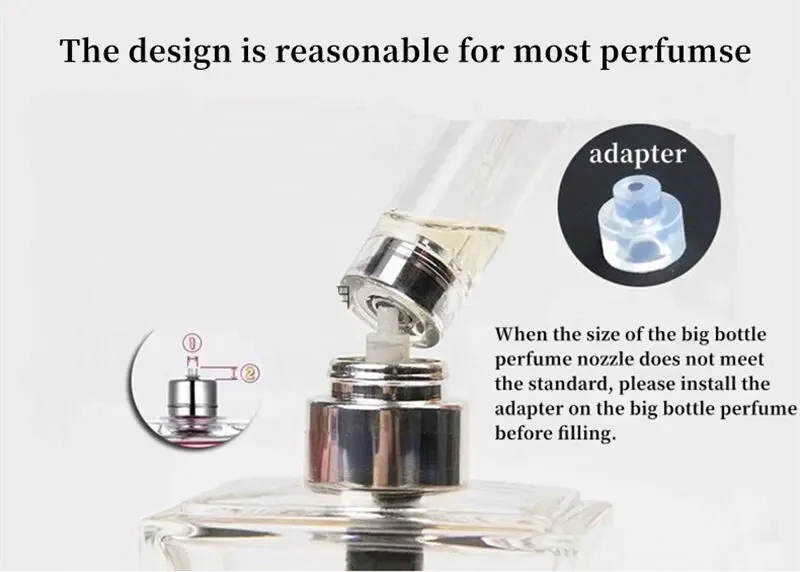 This refillable bottles can match most perfume bottles usually, and just in case, we will gift a set of conversion heads into each package.