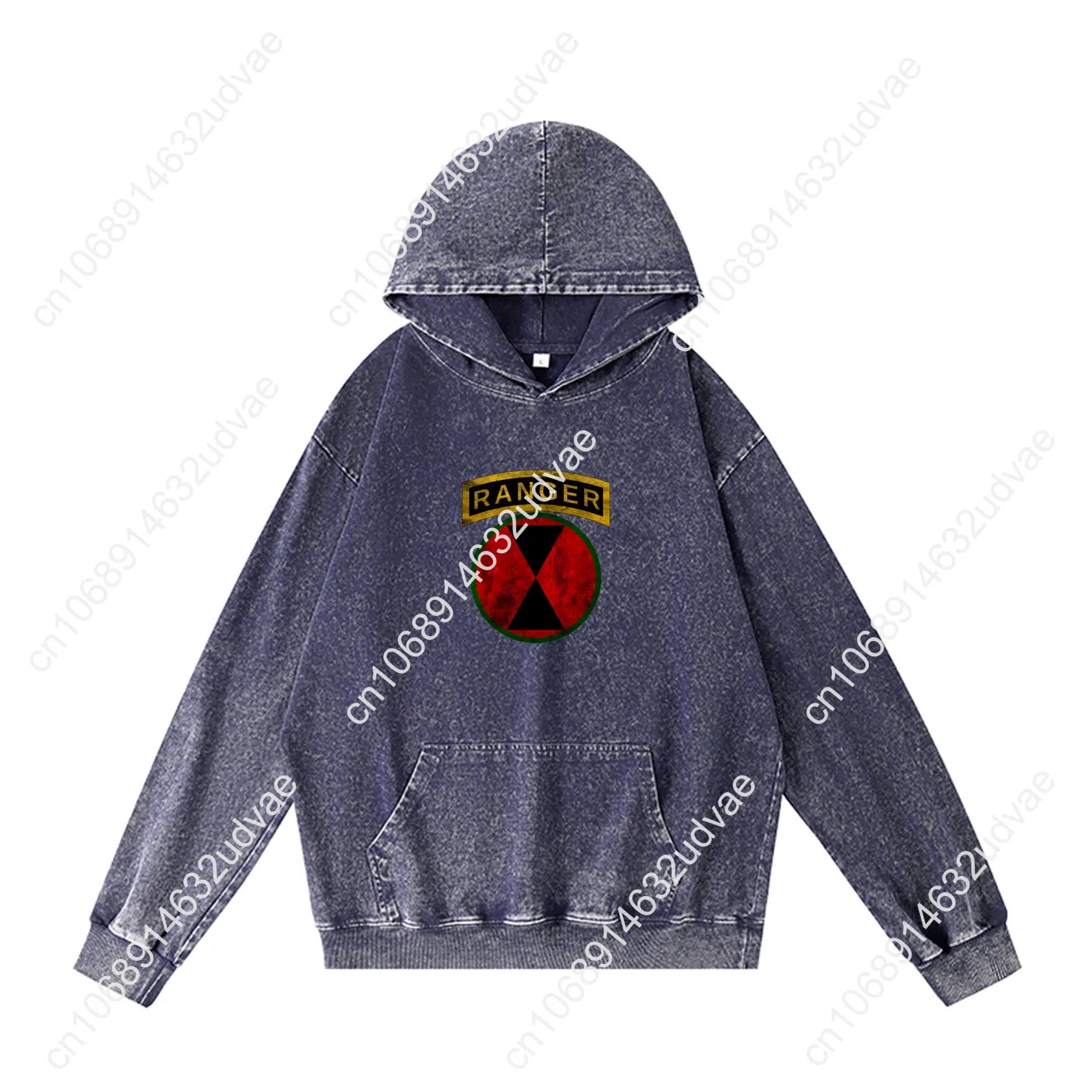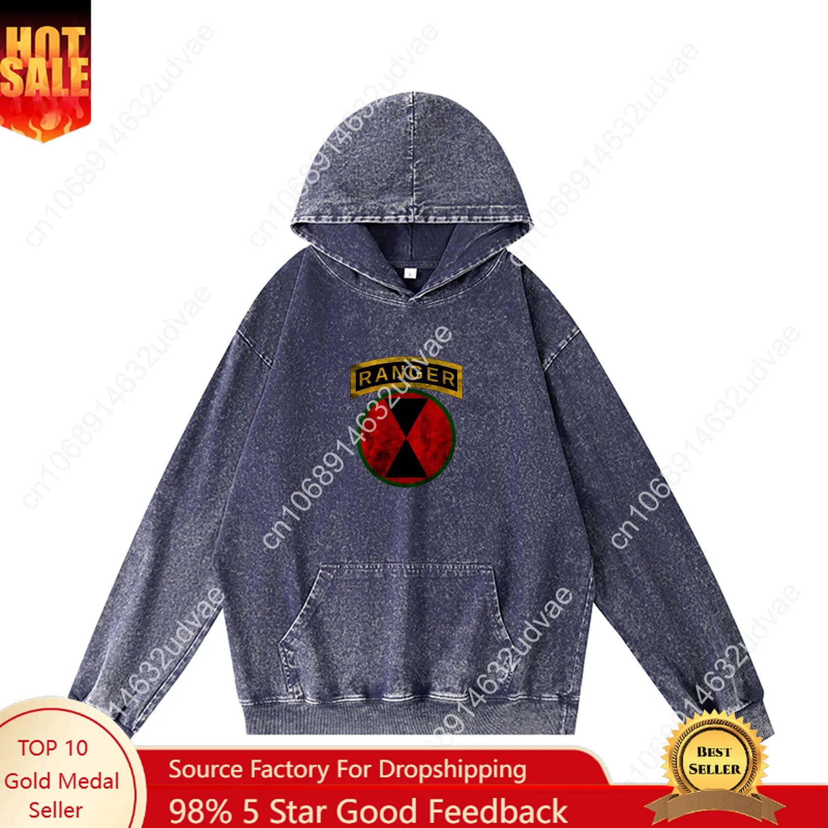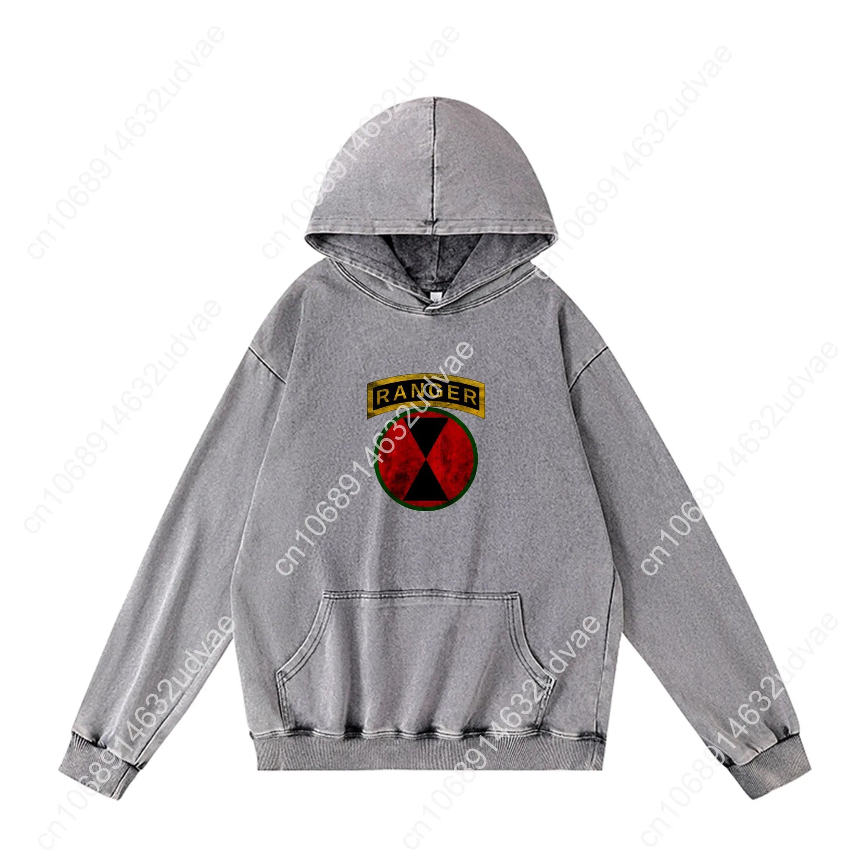 7th Infantry Division Patch with Ranger Tab Hoodies Retro Hooded Sweatshirt Man Woman Teenager Pullover Pocket Customized Tops