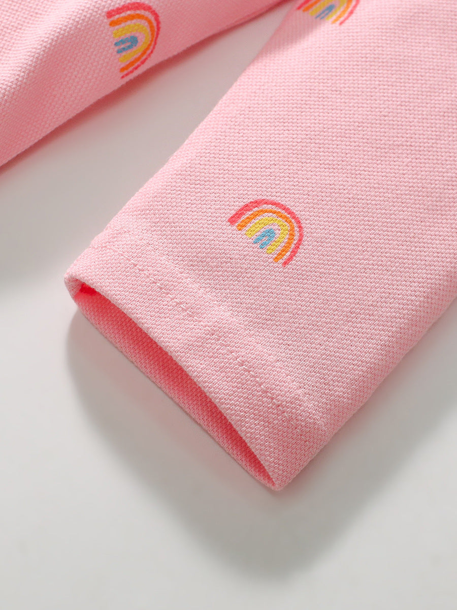 Brighten up chilly days with this playful autumn polo dress for girls. Featuring a cheerful rainbow pattern and a classic turn-down collar, it combines cozy long sleeves with a fun, colorful design. Perfect for layering or wearing on its own, this dress adds a splash of joy to any fall adventure.