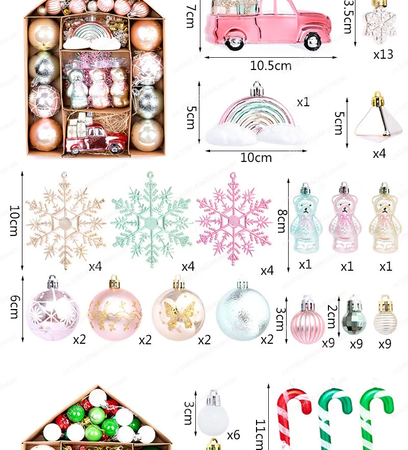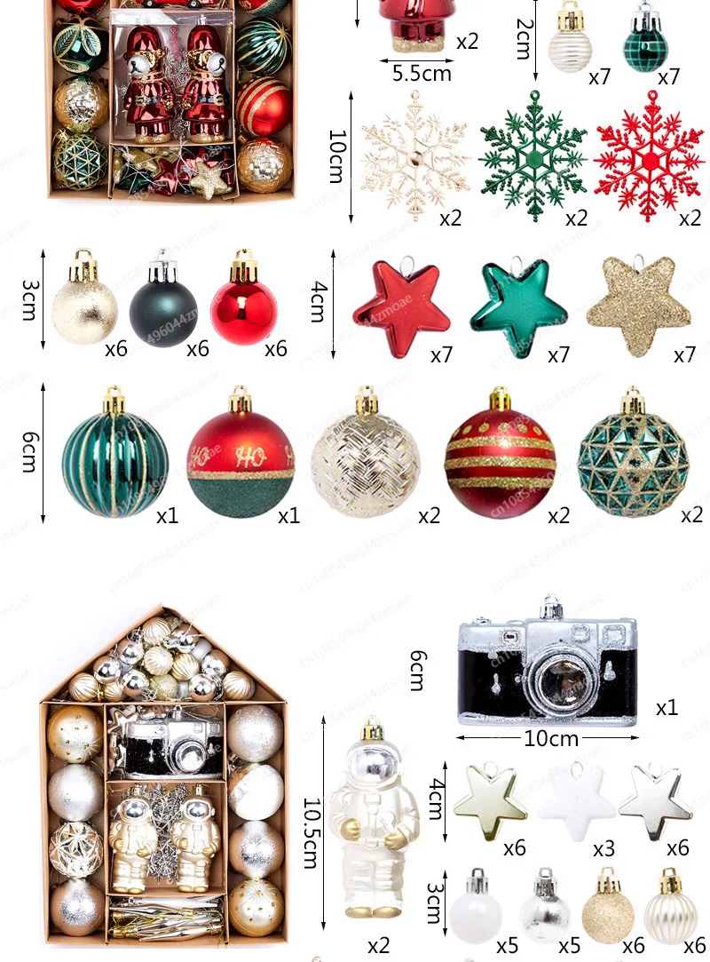 Christmas balls 70 boxed special-shaped painted hanging balls Christmas tree pendants Colorful balls Christmas decorations