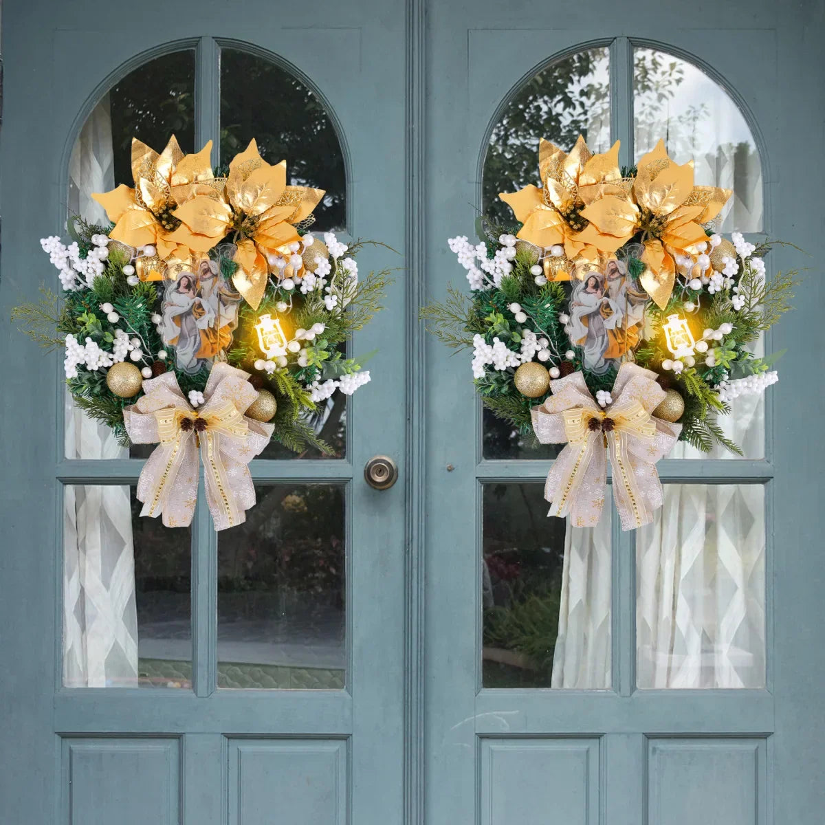 Christmas Jesus Wreath Golden Flower Garland Decoration