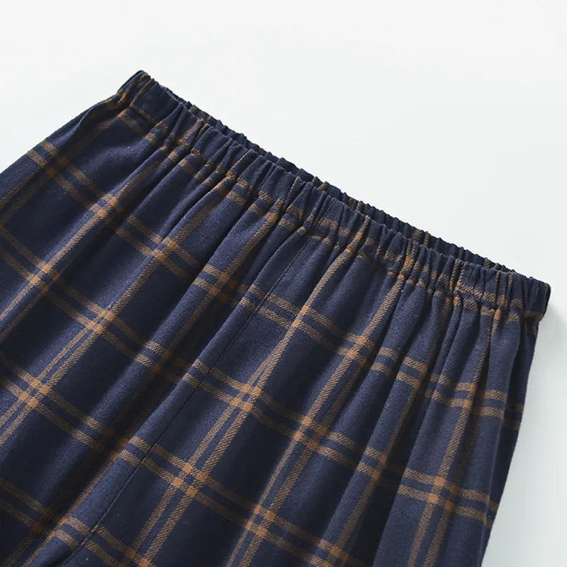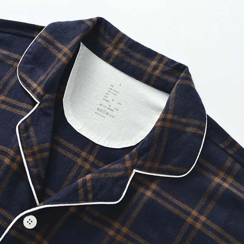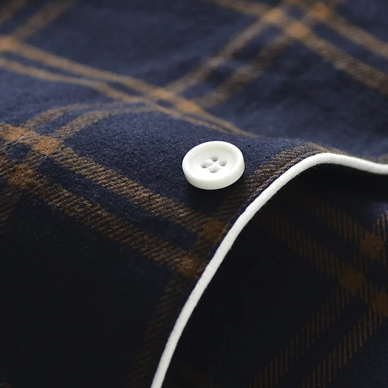 Couple's Home Clothes High-quality Cotton Flannel Warm Long Sleeve Long Trousers 2 Pcs Pajamas Set Checkered Sleepwear Clothes