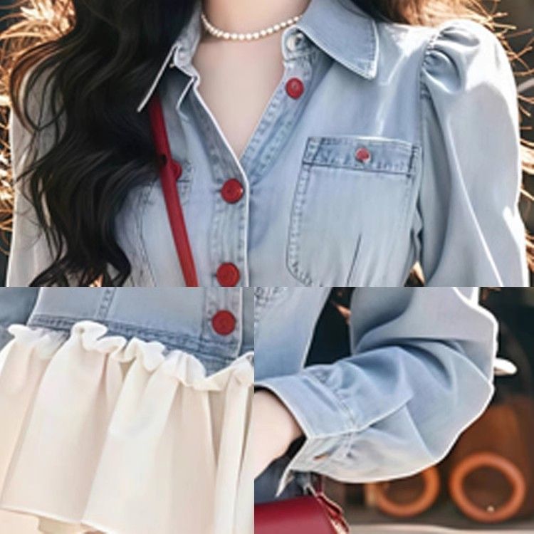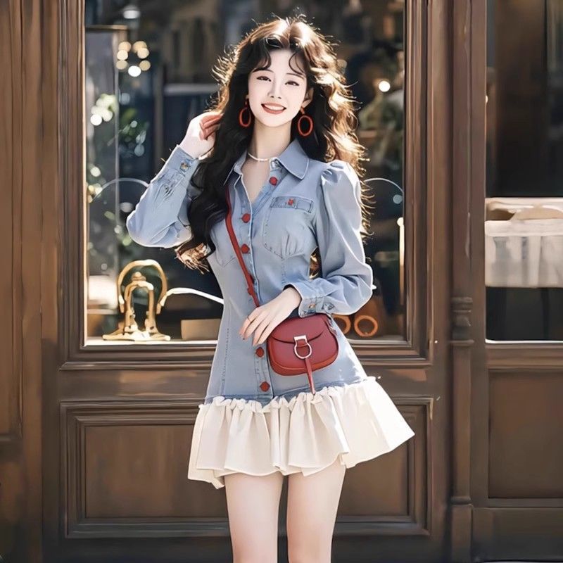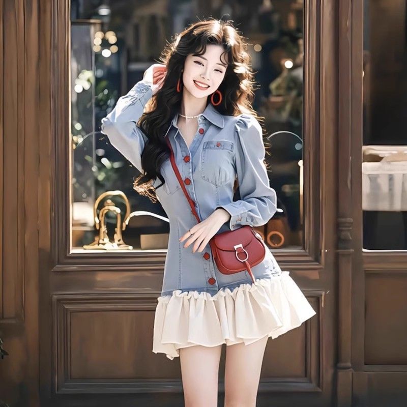 Hong Kong Style Retro Design Patchwork Denim Dress