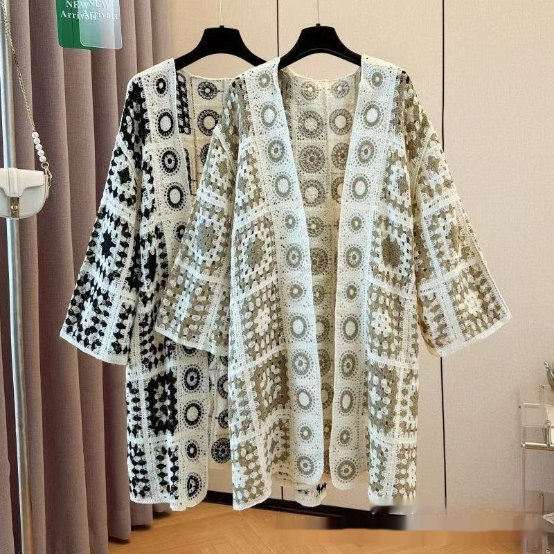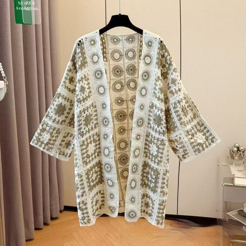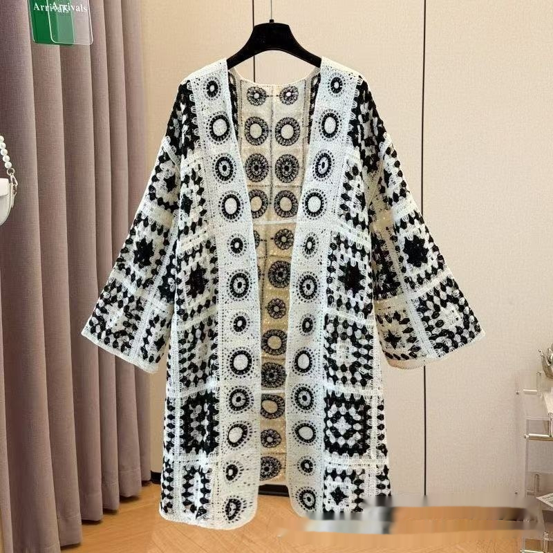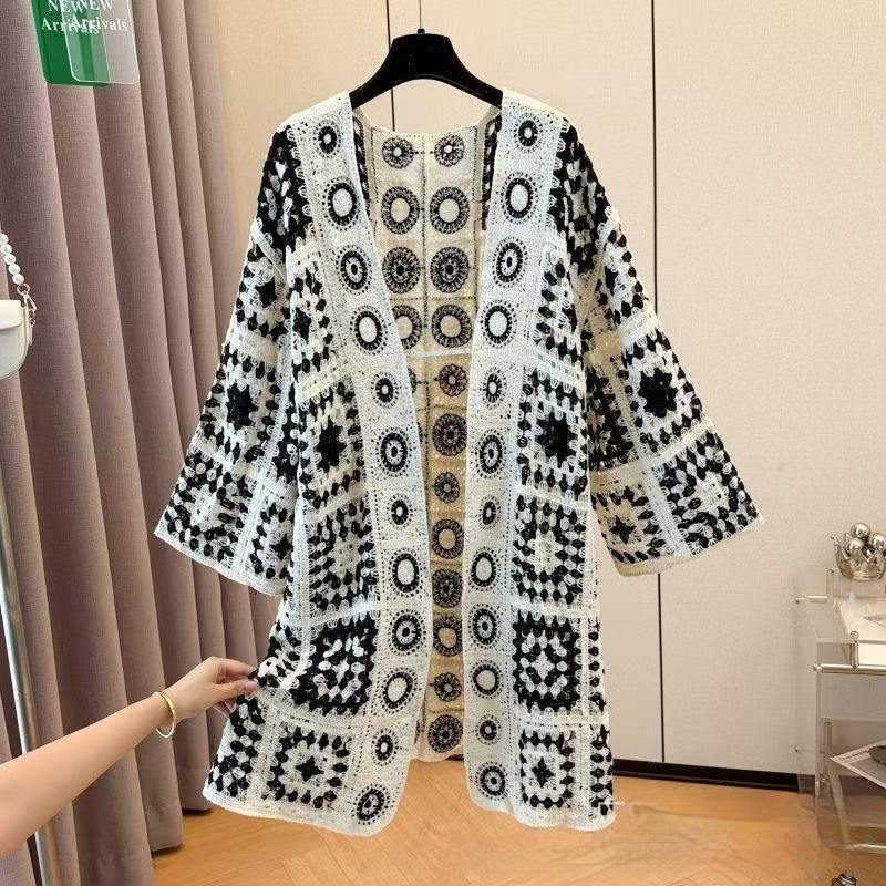 Ladies' Loose Embroidered Thin Knit Cardigan