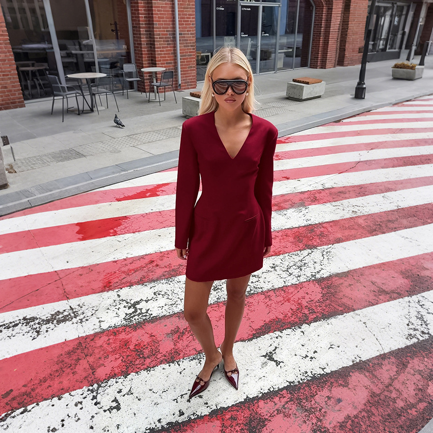 Long Sleeve Waist-Cinching Slim Fit Women's High-End Dress