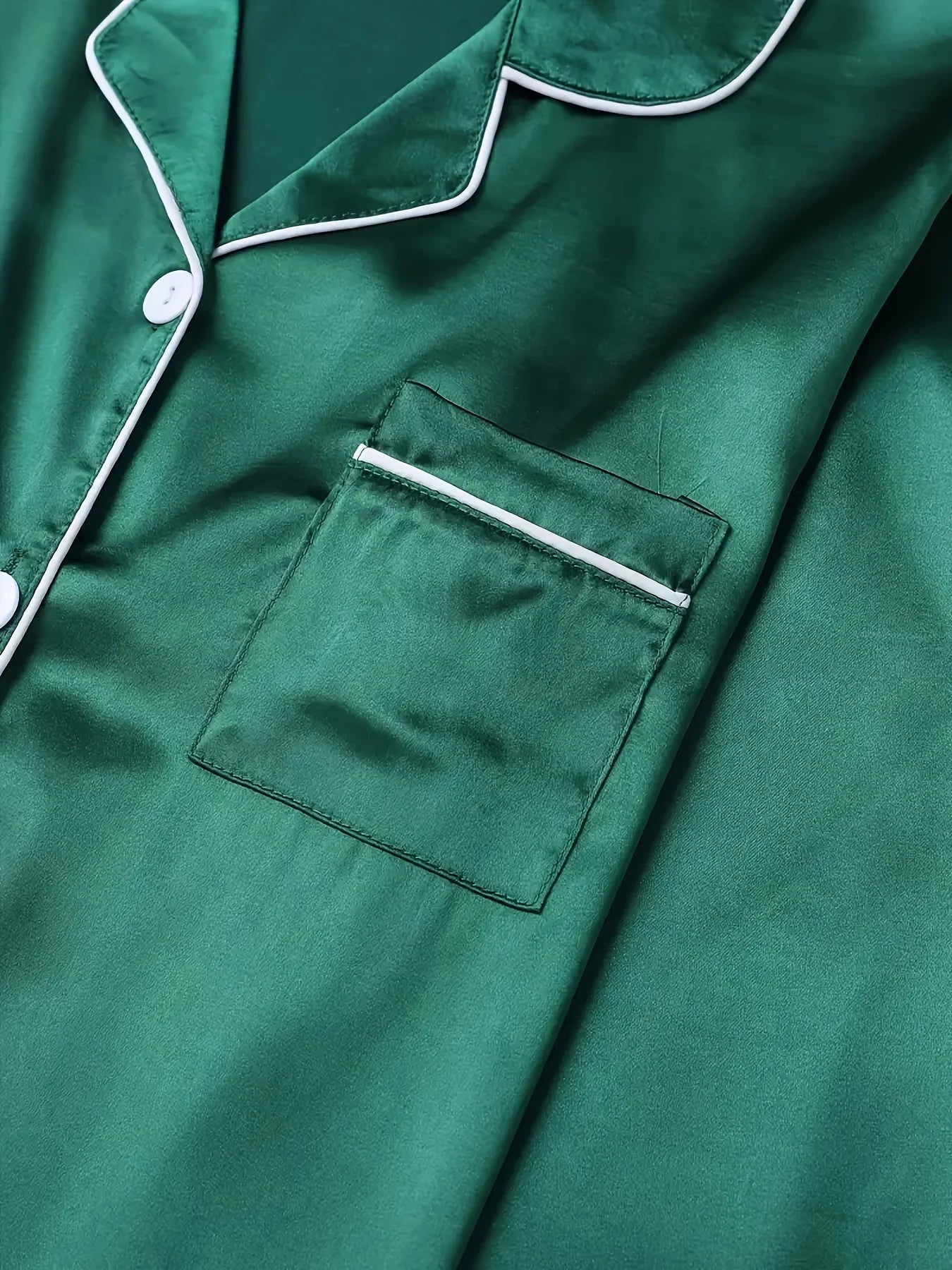 Solid Pajama Set Long Sleeve Button Up Lapel Top & Pants Pj Set Women's Sleepwear & Loungewear