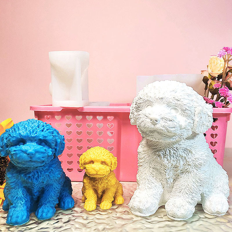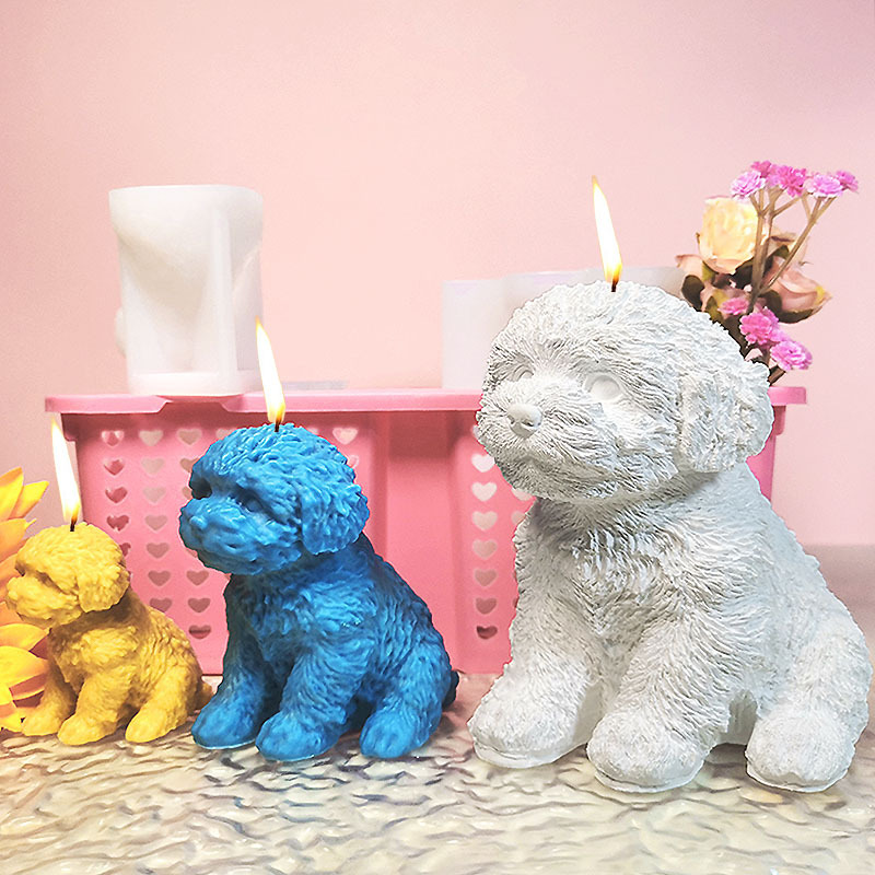 Teddy Dog Candle Mold Cute Animal Pet Puppy Dog Handmade Aromatherapy Plaster Soap Silicone Mould DIY Home Decoration Tools