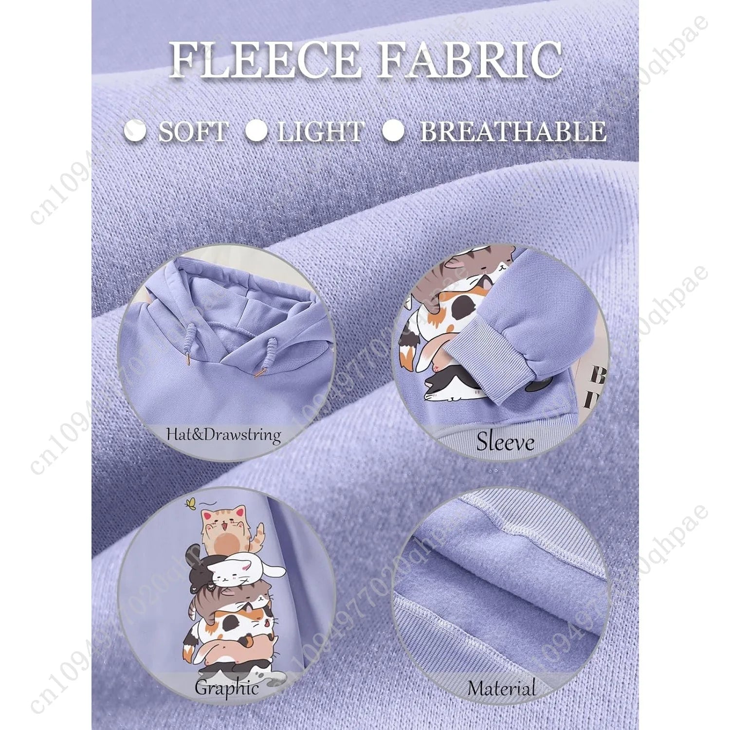 Tuislay Cute Cat Graphic Hoodies for Teen Girls Kawaii Cartoon Printed Hoodie Women Anime Print Hooded Sweatshirt Pullover